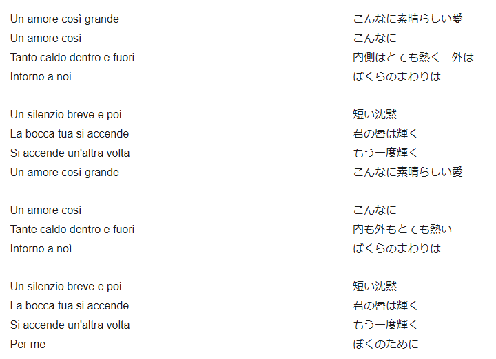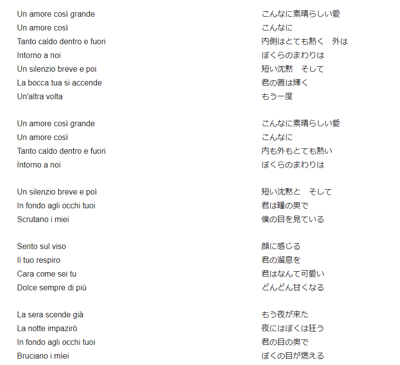 イタリア語のオリジナル歌詞と日本語翻訳を付けていますので、是非 意味を味わって下さい。