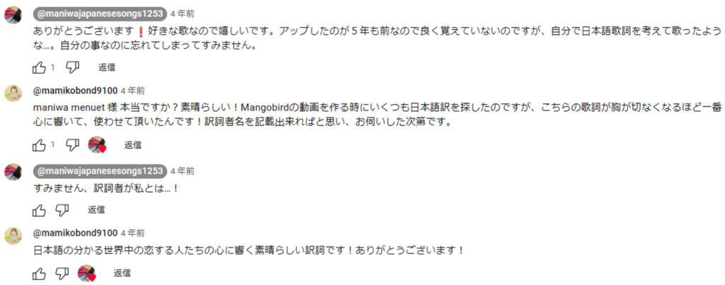 日本語 訳詞・・・この歌詞が曲に似合っていると思います。